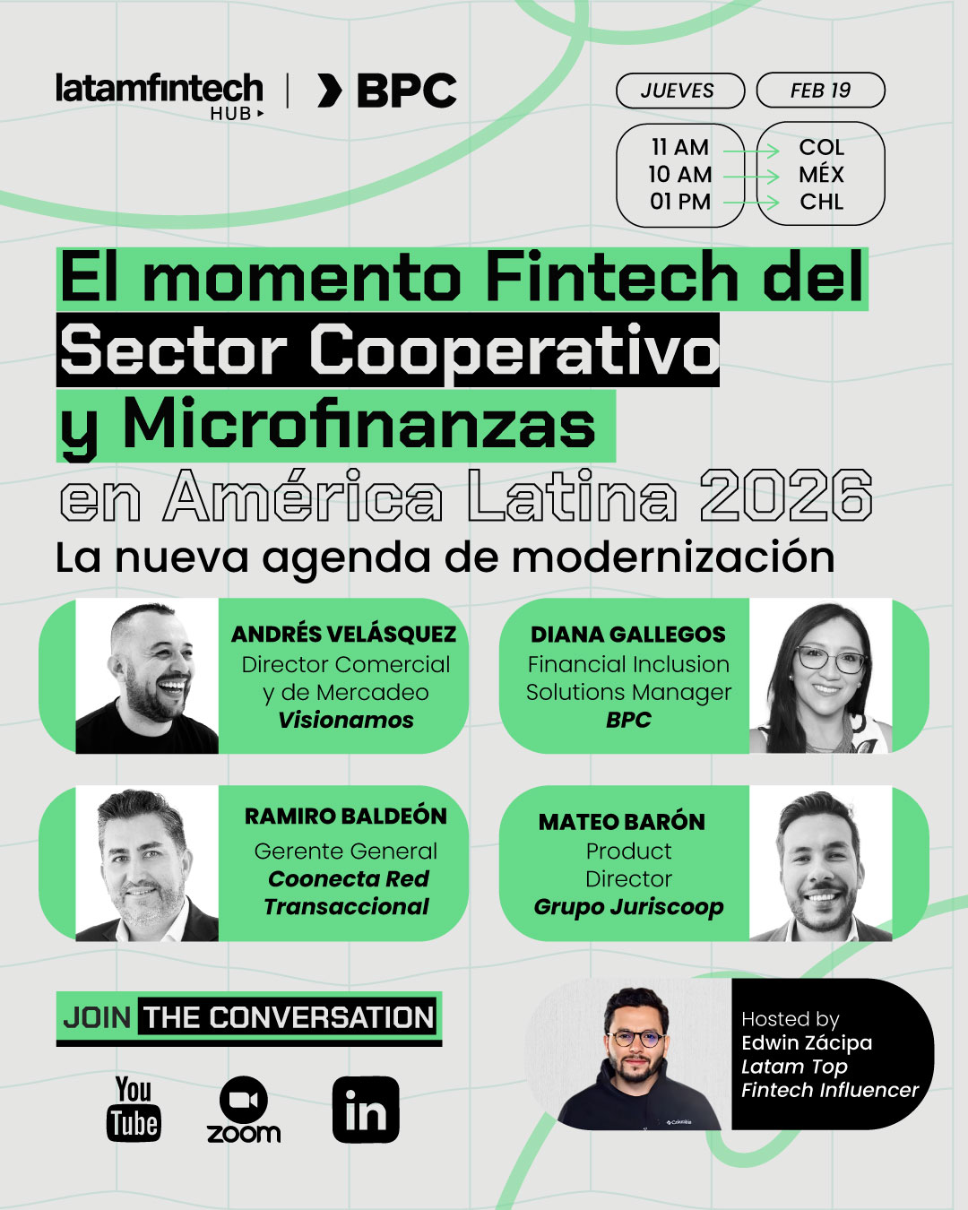 Entonces no te pierdas este webinar, pues junto a Visionamos, Grupo Juriscoop, BPC y Coonecta Red Transaccional, te contaremos las últimas tendencias, casos de éxito y oportunidades de este sector en plena expansión y que esta en transformación hacia una digitalización más profunda.