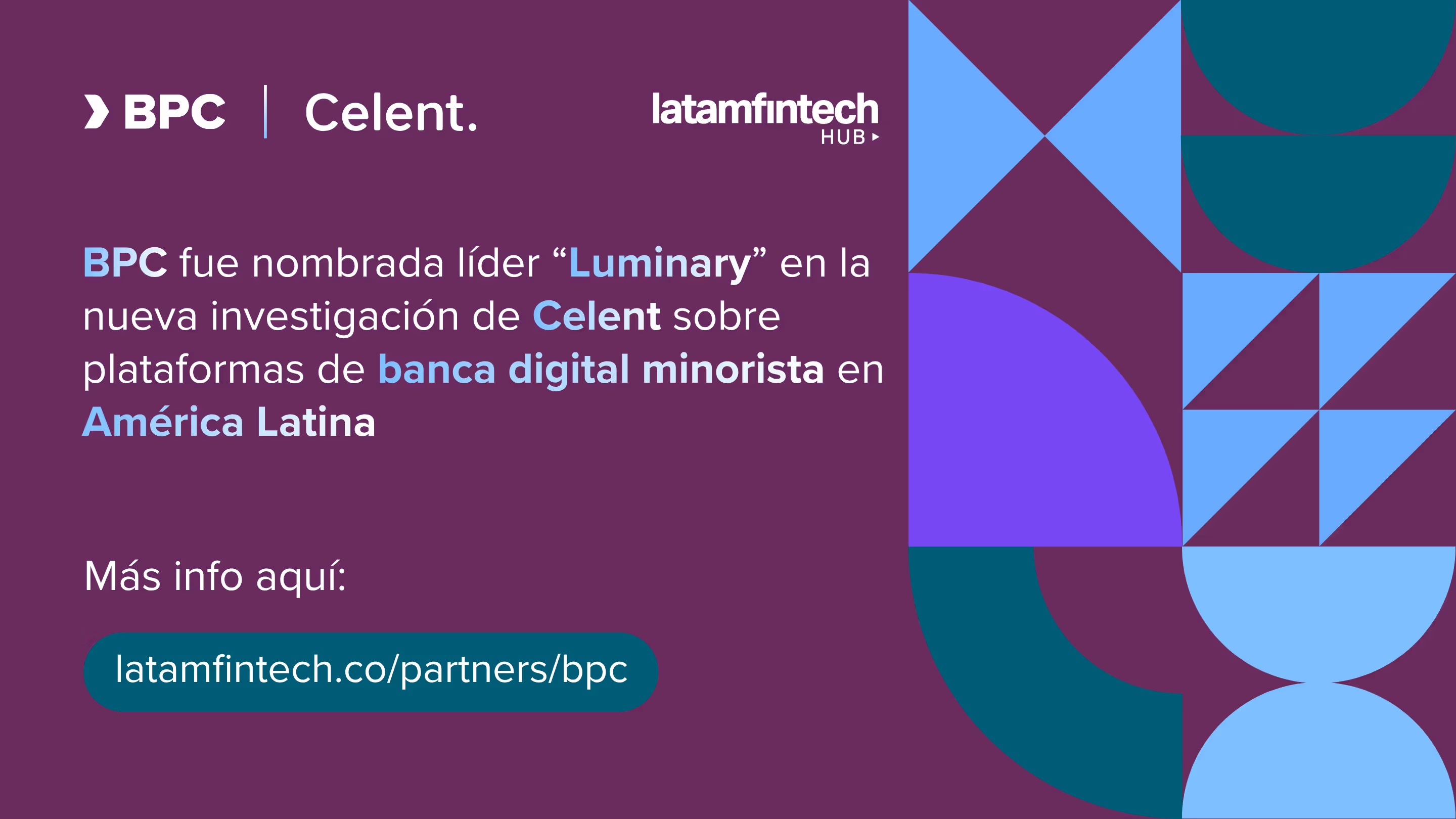 Mariana Posada, directora de operaciones para Latinoamérica de BPC , afirmó: “Observamos que Latinoamérica demanda plataformas que impulsen la inclusión y la innovación simultáneamente. SmartVista es nativa de la nube, modular y está diseñada para casos de uso reales en Latinoamérica, desde billeteras digitales y experiencias móviles hasta ecosistemas de pago para pymes y comercios. Nos enorgullece el reconocimiento Luminary de Celent; refleja nuestro compromiso con la tecnología de vanguardia y con la colaboración estrecha con nuestros clientes para ofrecer experiencias digitales innovadoras que superen las expectativas del mercado”.